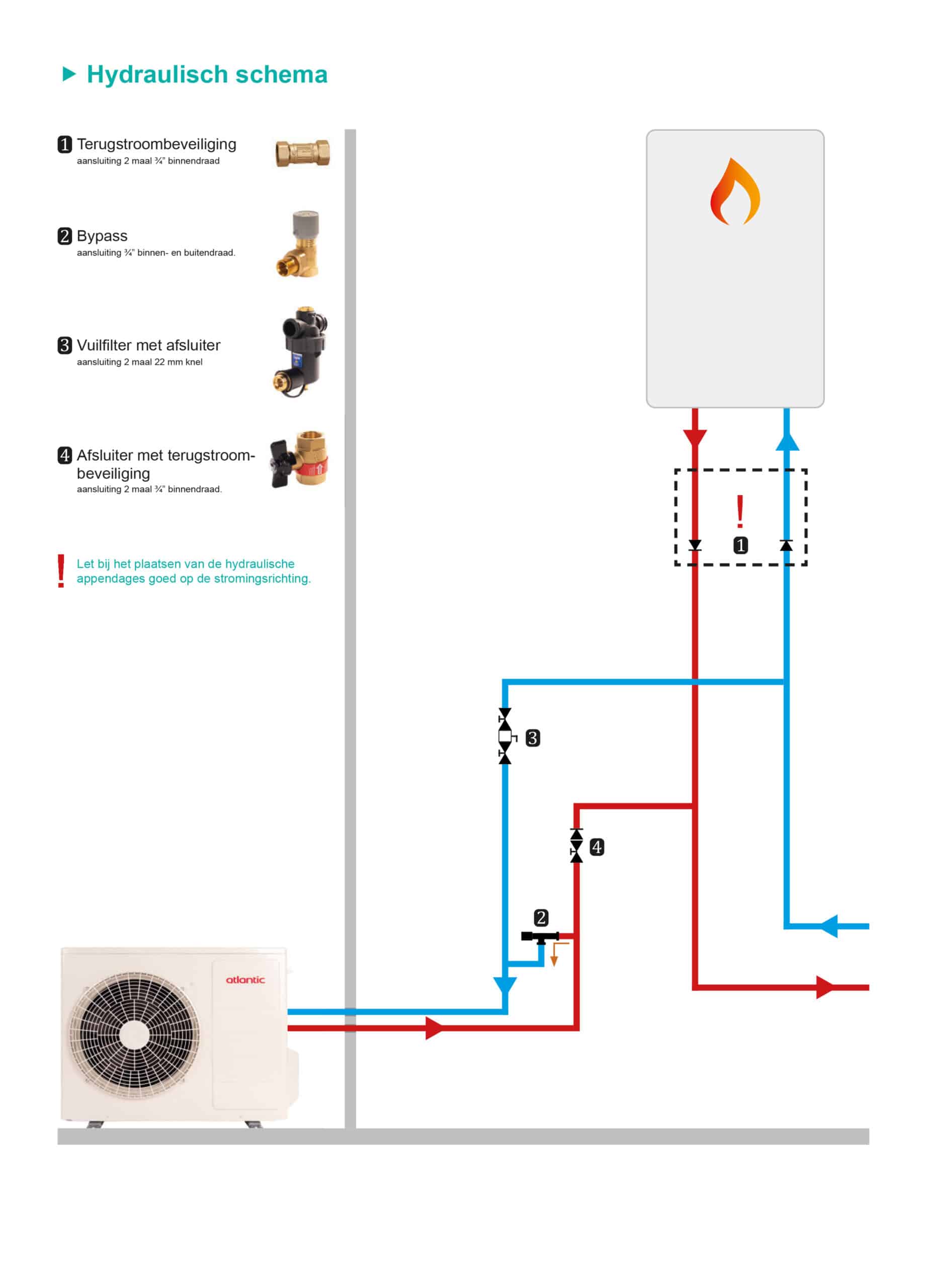 De Hybride Add-on werkt samen met alle modulerende en aan/uit gestuurde cv-ketels. Het systeem bestaat uit drie hoofdcomponenten;